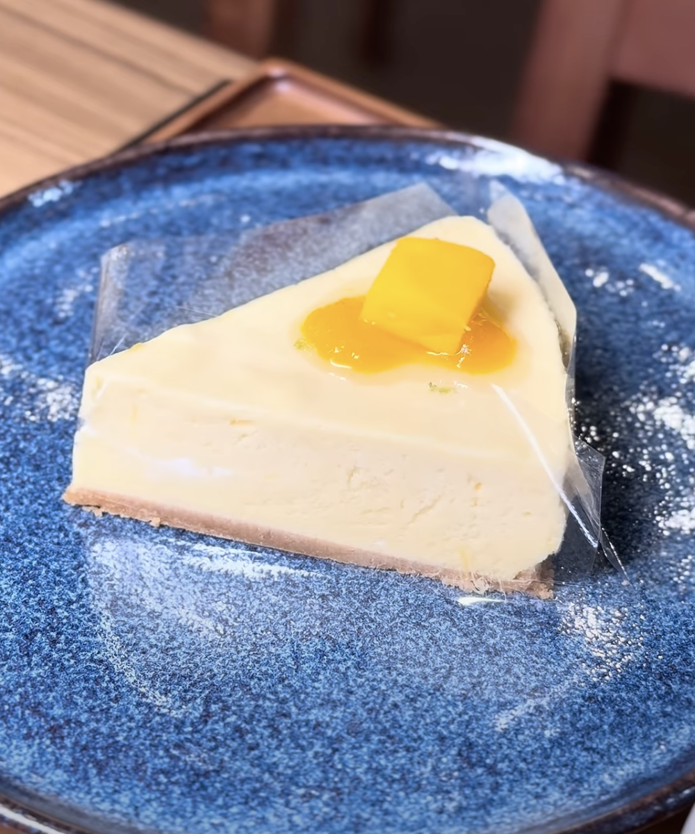 - Cheesecake de manga: nosso favorito absoluto. Leve, equilibrado, nada enjoativo e com aquele padrão japonês de sobremesa.