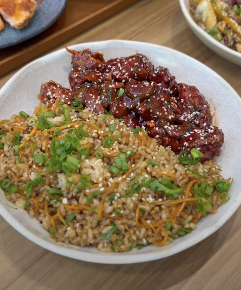 - Yakimeshi com karaague: arroz frito muito bem executado, com frango suculento e tempero no ponto certo.